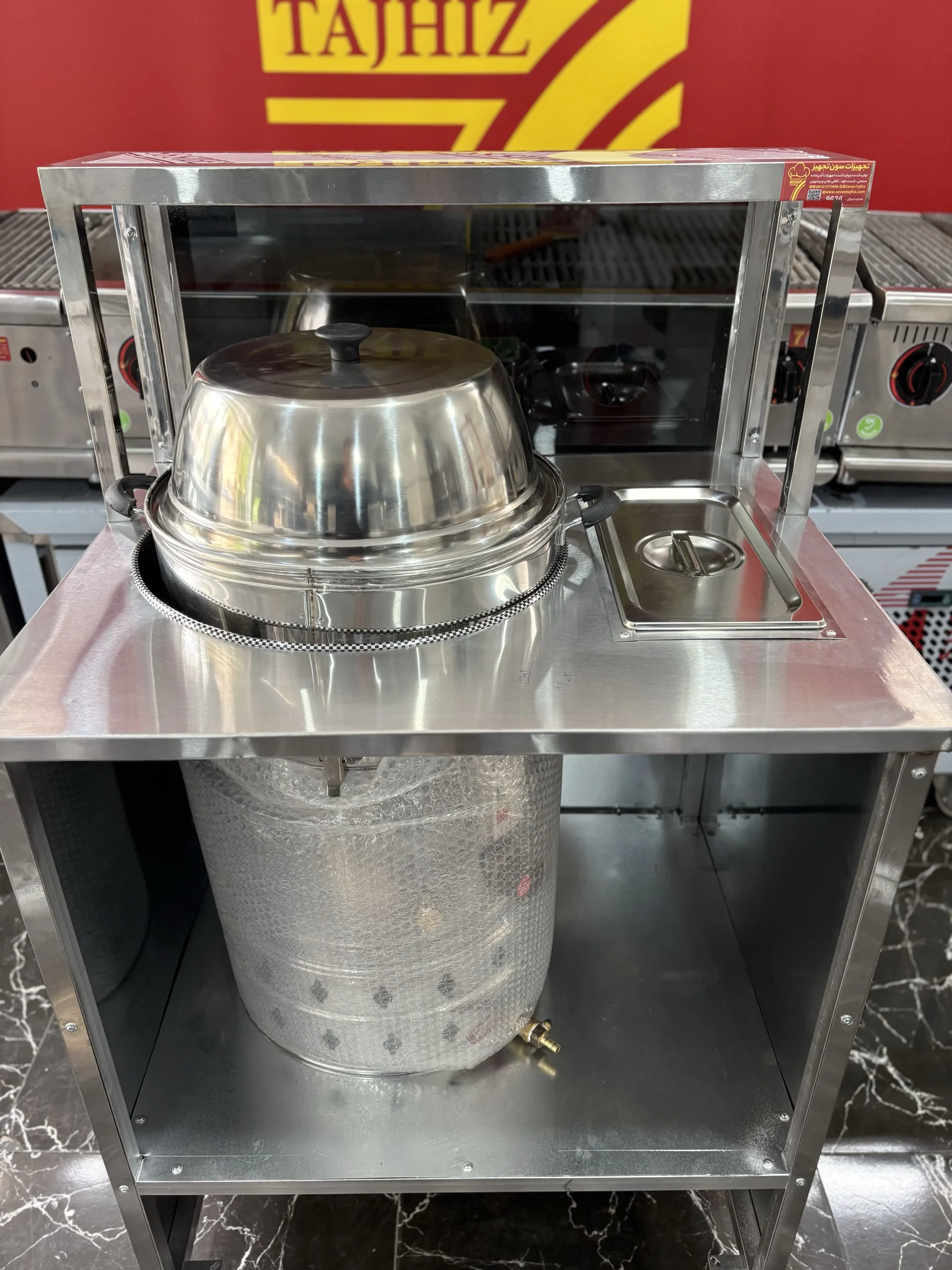 - ابعاد بخار پز ذرت مکزیکی دارای قطر ۴۰* ارتفاع ۶۶ ( بدون درب ) سانتی متر.