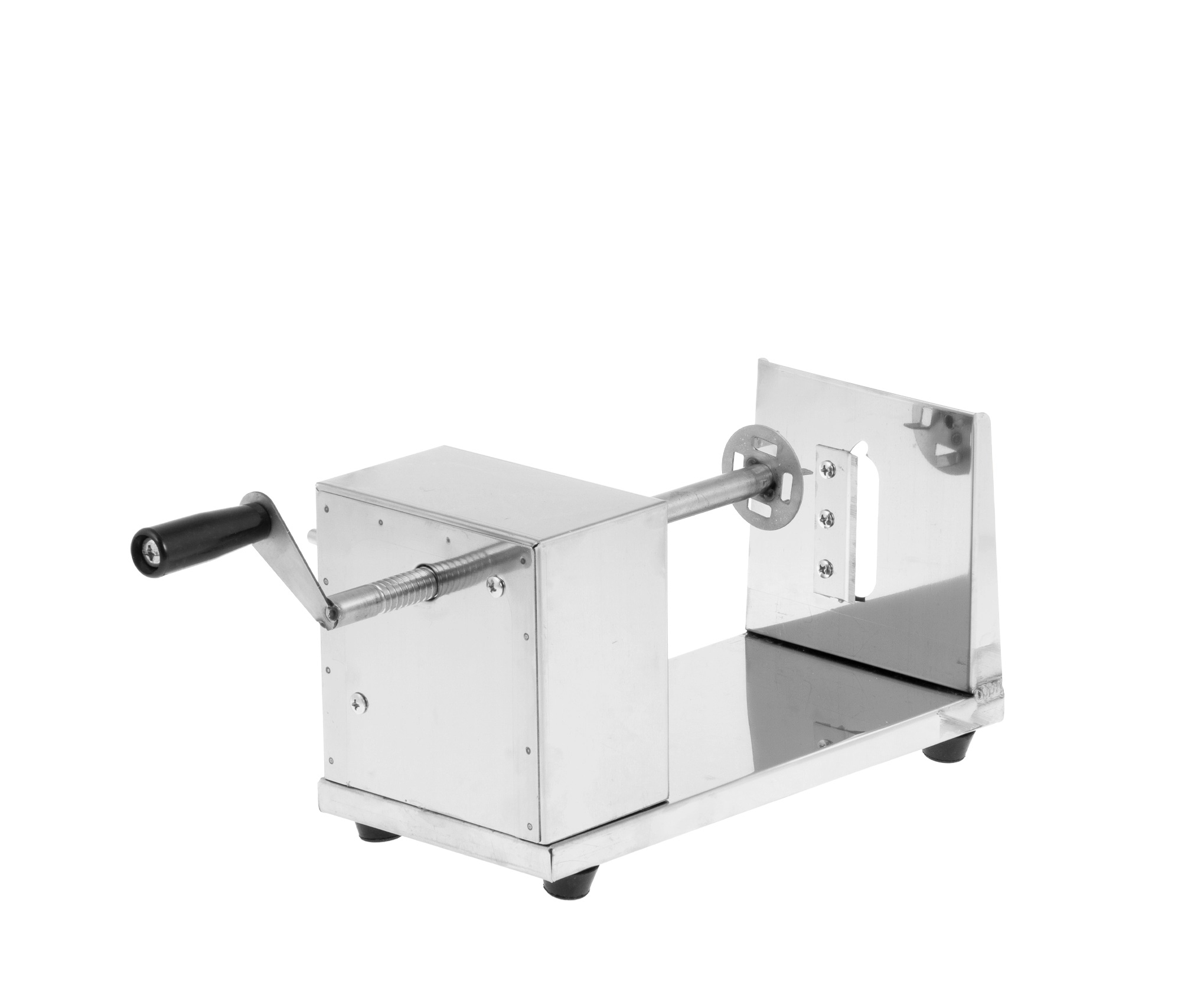 با استفاده از دستگاه برش فنری سیب زمینی می توانید سیب زمینی ها را به صورت فنری برش دهید و با آن چیپس های فنری درست کنید. چیپس همواره یکی از پرطرفداترین تنقلات هم برای بزرگسالان و هم بچه ها بوده است؛ با دستگاه برش فنری سیب زمینی، فرچیپس های بسیار سالم و بهداشتی برای خود و خانوادتان تهیه کنید و از دور هم بودن لذت ببرید. این دستگاه فوق العاده کاربردی جهت برش سریع و دقیق سیب زمینی به شکل فنری طراحی گردیده است. با دستگاه فرچیپس علاوه بر سیب زمینی، مواد غذایی دیگر از جمله کدو، خیار و هویج های نسبتاً قطور را نیز میتوانید به صورت فنری برش داده سفره های خود را تزیین کنید. کار با این دستگاه بسیار آسان بوده و با توجه به دستی بودن آن، هیچ گونه نیازی به برق نداشته و در هر مکانی میتوانید آن را قرار دهید. تنها کافیست سر سیب زمینی را با چاقو برش داده و سیخ چوبی را از وسط سیب زمینی عبور داده و به سر دستگاه متصل نمایید.
